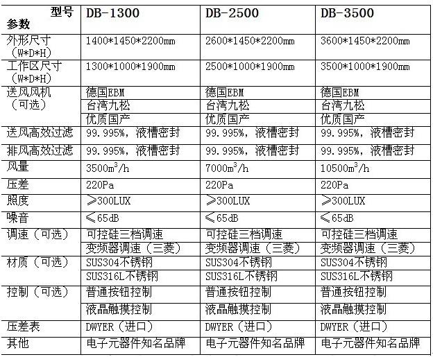 本设备由工作区、回风箱体、风机箱体、出风箱体及外箱体几大部分拼装而成。控制面板位于设备内部工作区正面,控制面板采用轻触型LED控制面板,可以控制风机起停,调节风机工况,调整工作区需要的风速(当设备安装使用后,需由专门人员调节工况)。在其旁有压差计,测试过滤器的阻力在送风箱体的内部还有排风调节板,可以调节设备的排风量在合理的范围内(设备安装就位后,由专业人员设试,请勿擅自调整)